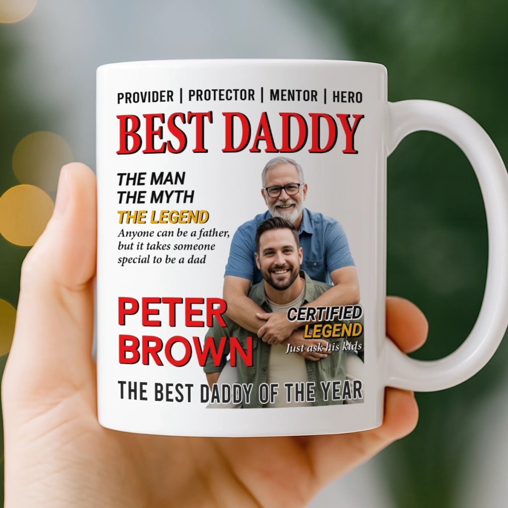 Custom Photo Magazine Mug - Personalized Birthday Gifts For Dad - Dad Love Leads Us Home