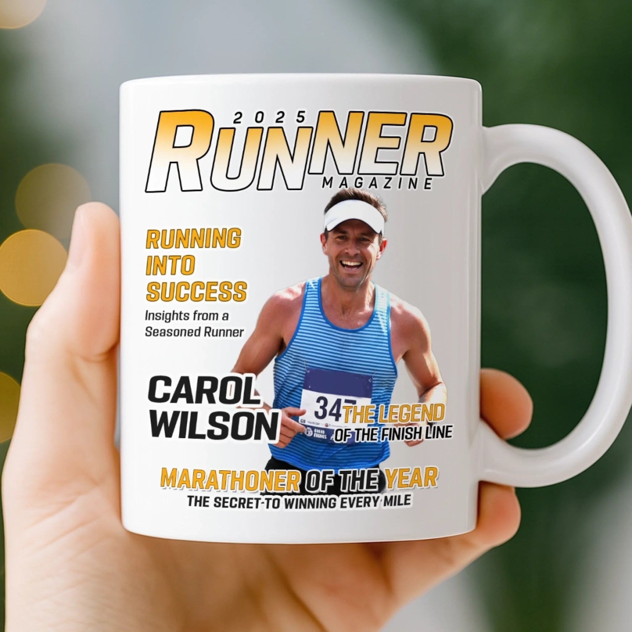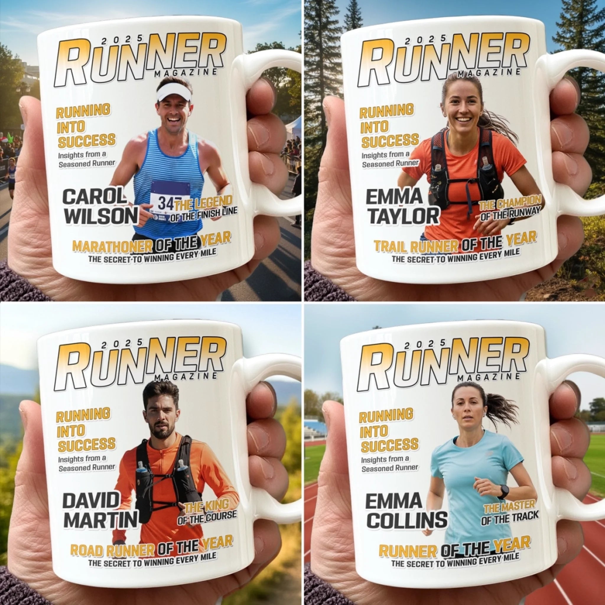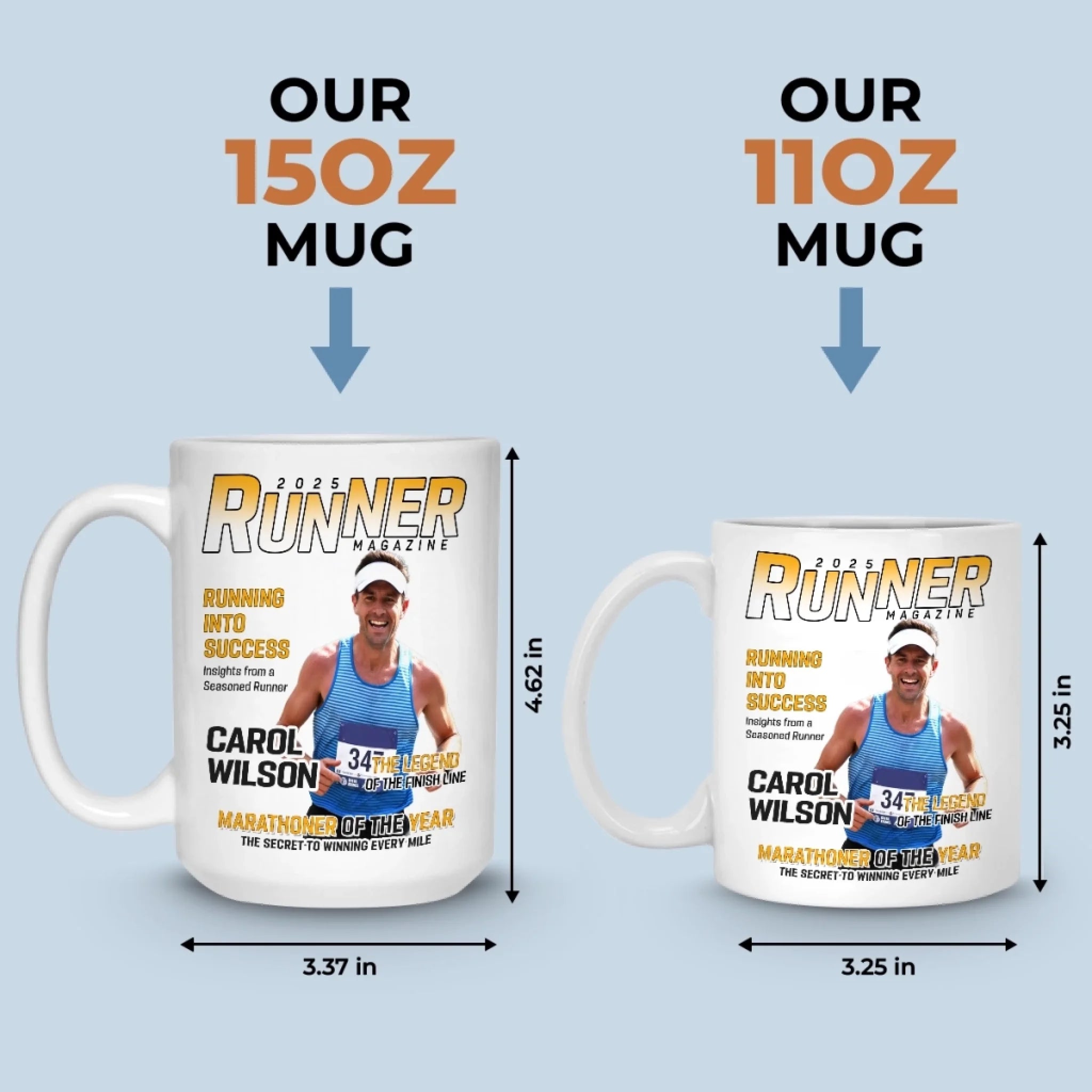 Custom Photo Magazine Mug - Personalized Birthday Running Gifts For Running Lovers, Sports Fans, Sports Lovers - Champions Train Daily
