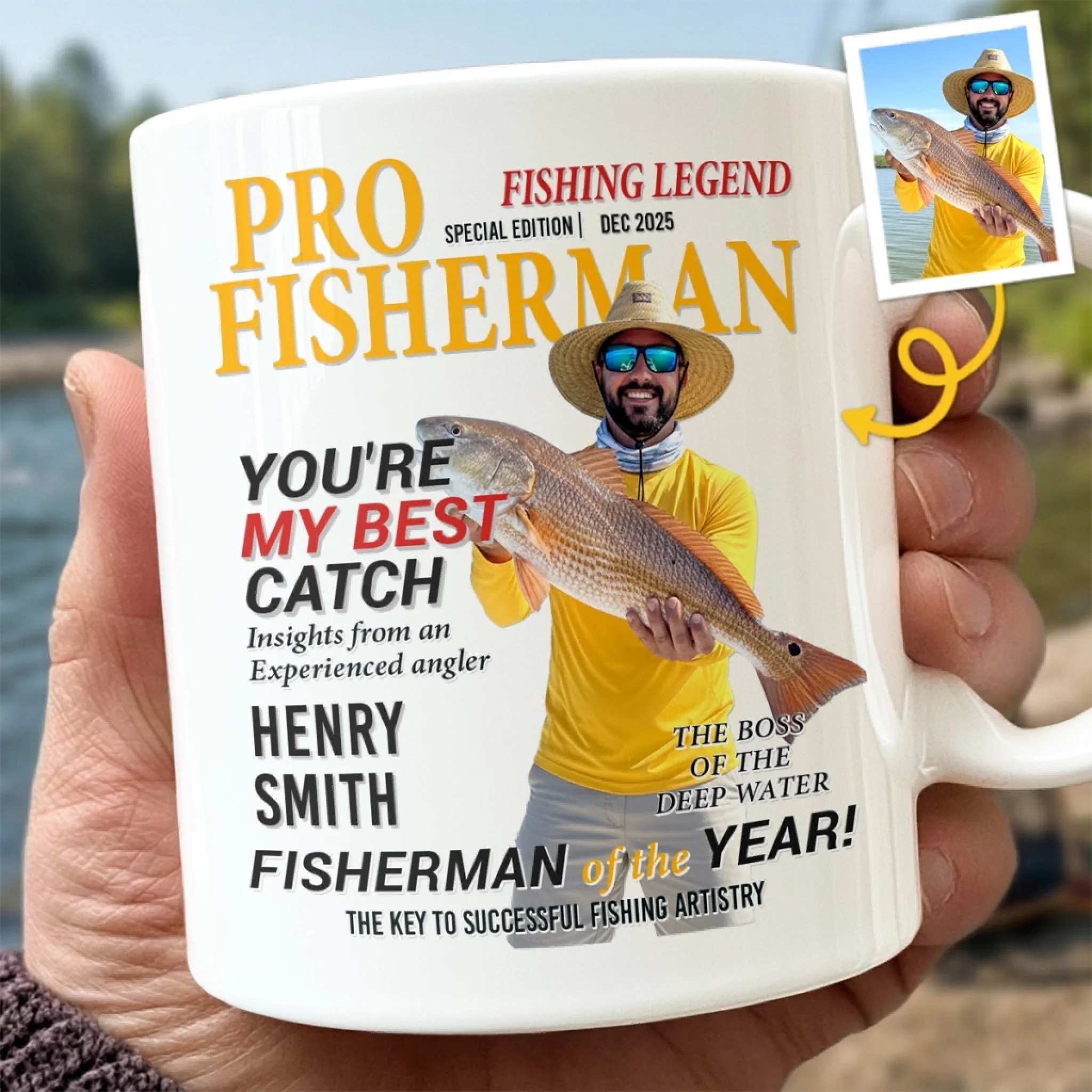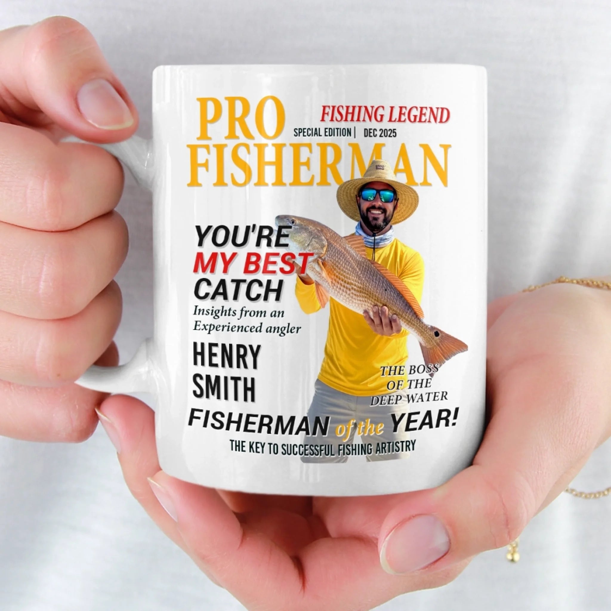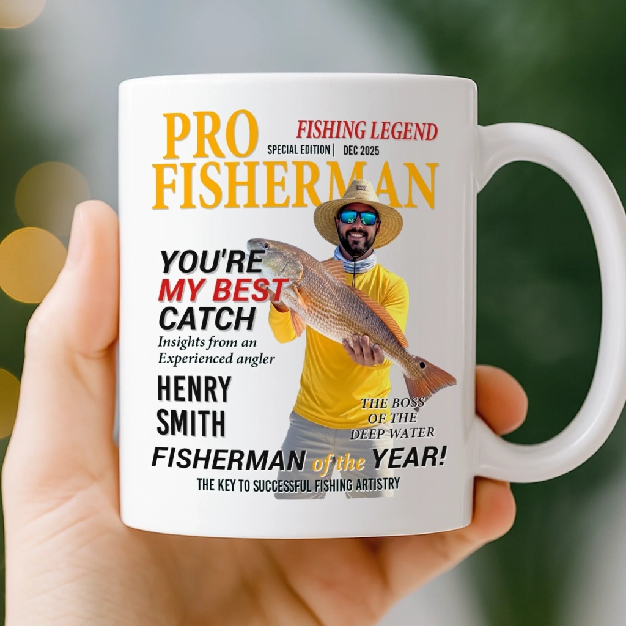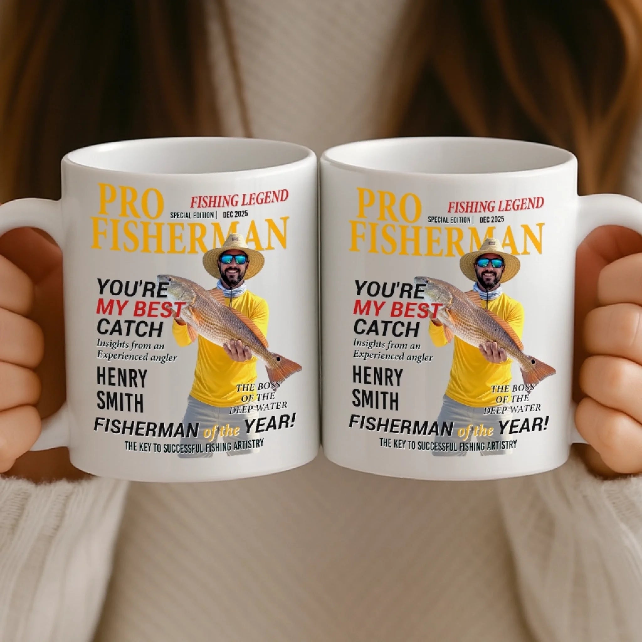 Custom Photo Magazine Mug - Personalized Birthday Gifts For Fisherman - Hooked On A Good Day