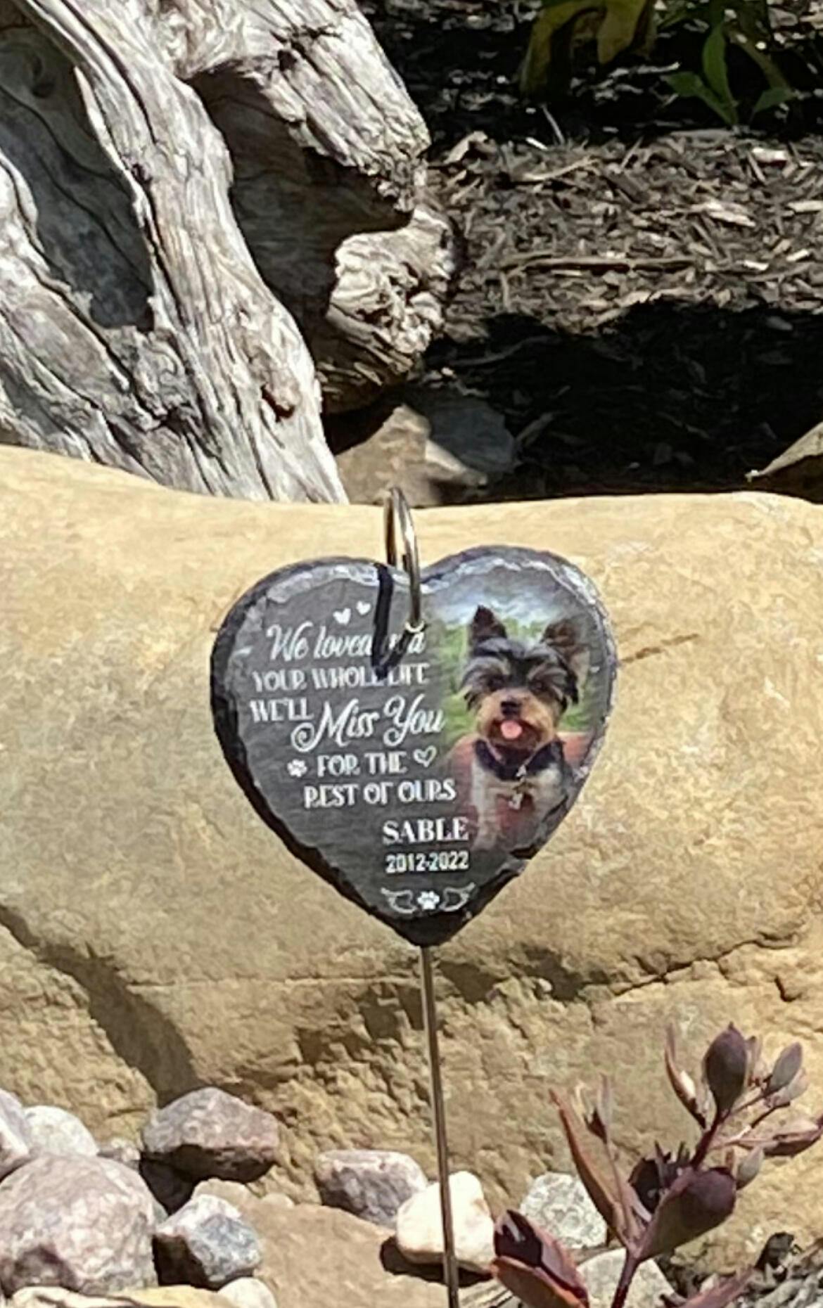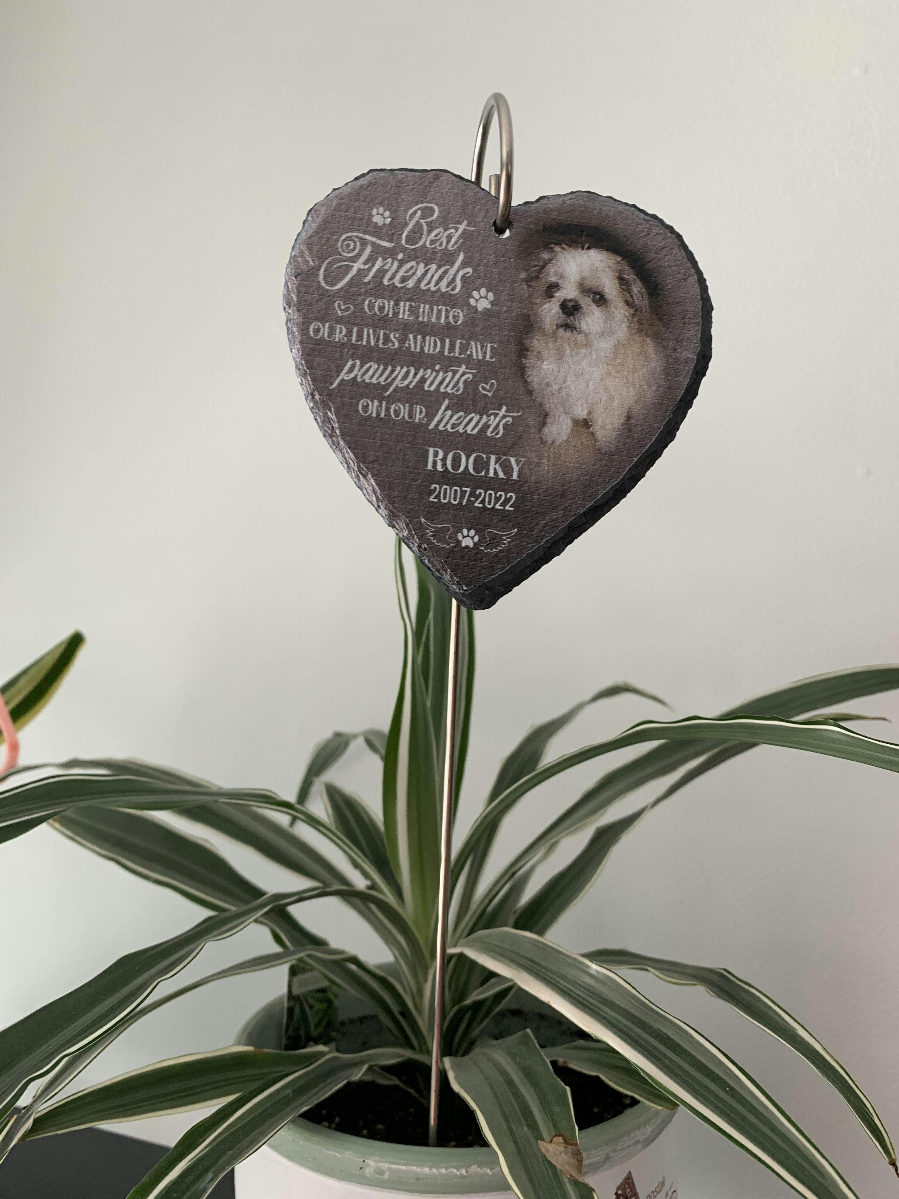 This Memorial Garden Slate and Hook is a meaningful decorative item that can be used to create a beautiful memorial garden in memory of loved ones. It is a sweet reminder that although they are gone, they are not forgotten, you will never forget the love and happiness you shared with them. It is also a perfect sympathy gift to show your care to someone who has lost their loved one.