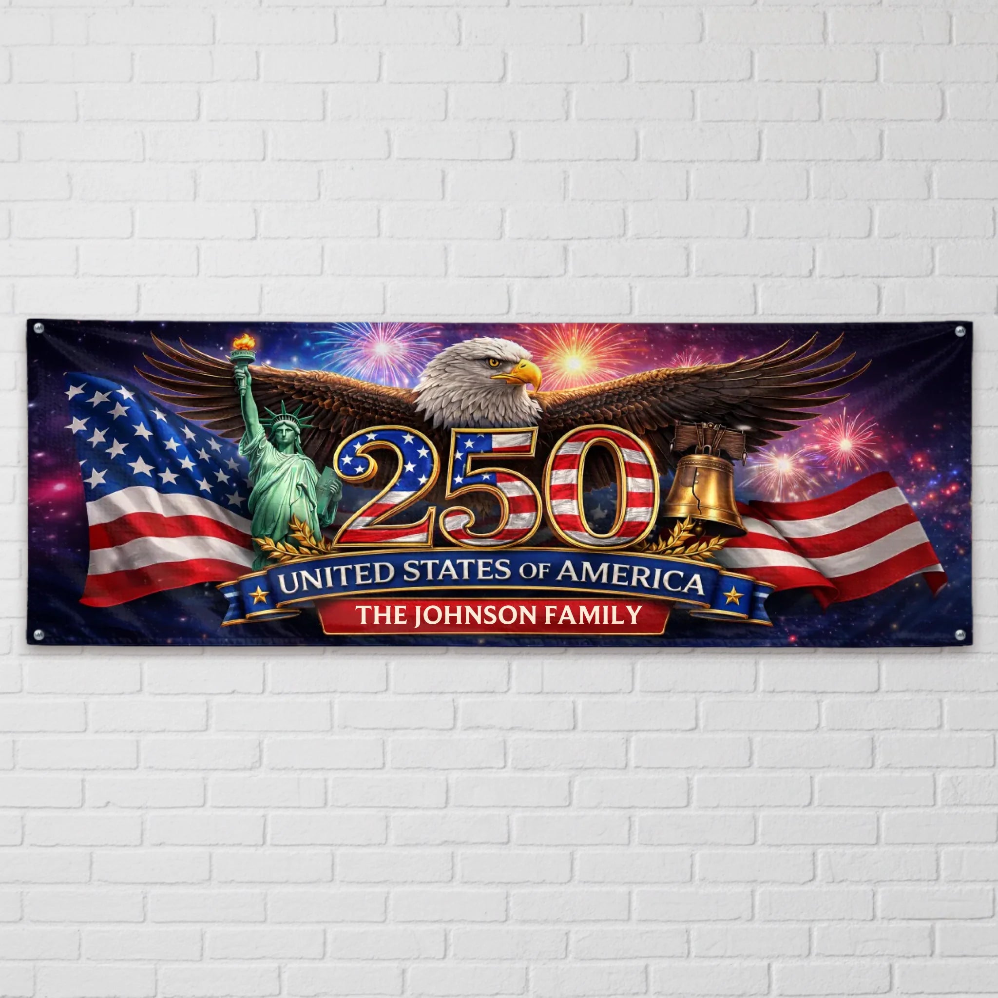 Custom Polyester Outdoor Banner - Personalized America 250th Anniversary Gifts For Mom, Dad, Brother, Sister, Kids - Freedom Starts At Home