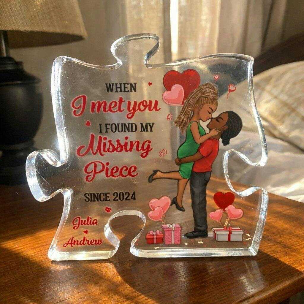Custom Puzzle Shaped Acrylic Plaque - Personalized Anniversary Wedding Gifts For Husband And Wife, Him And Her - Destiny Brought You To Me