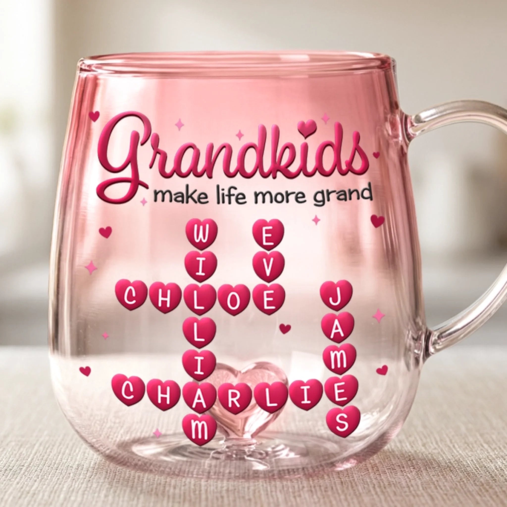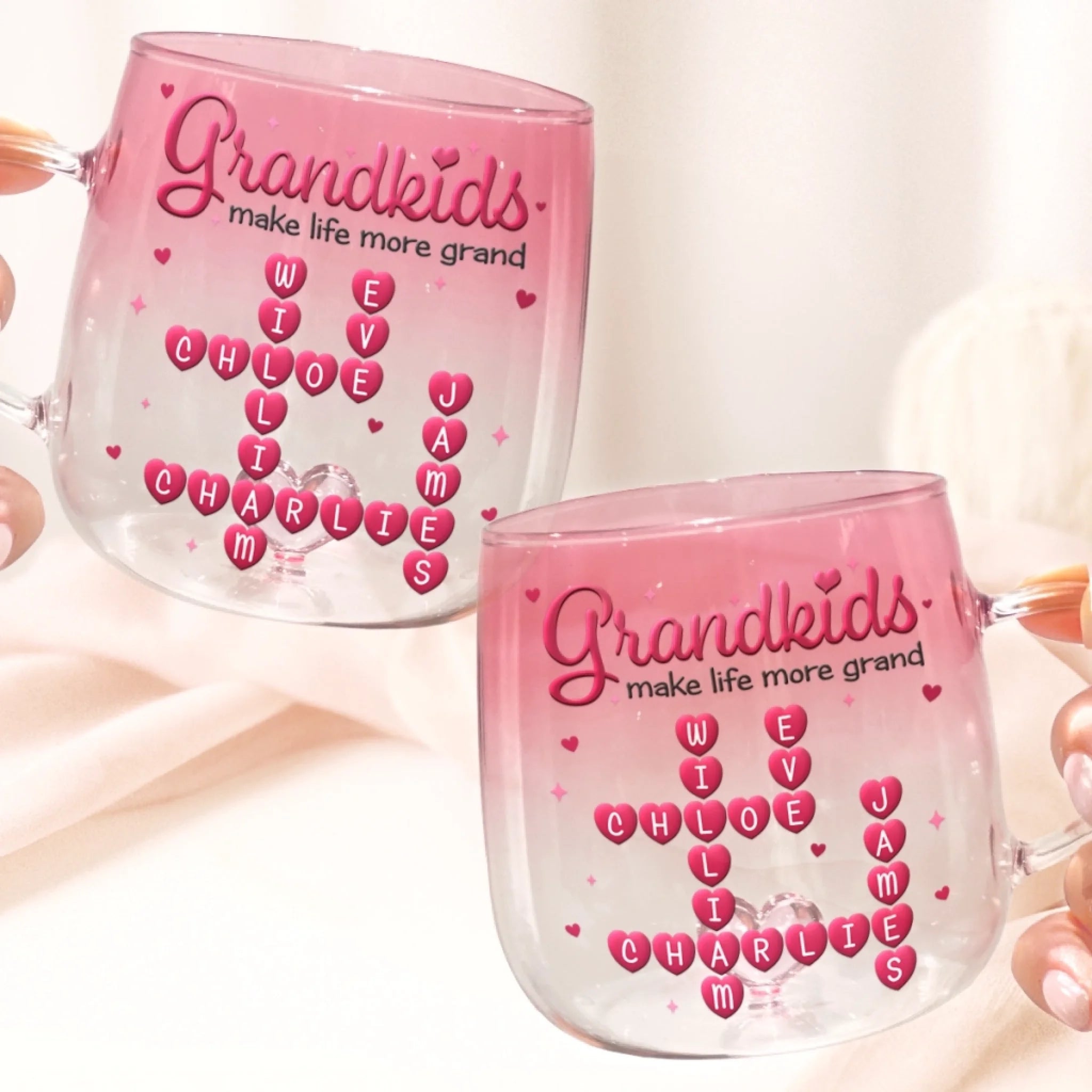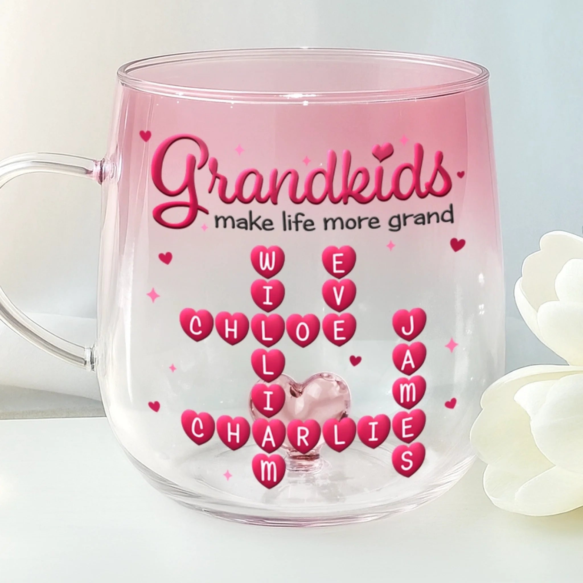 Custom Scrabble Gradient Glass Mug - Personalized Mother's Day Birthday Gifts For Mom, Grandma - Love Multiplied By Grandkids