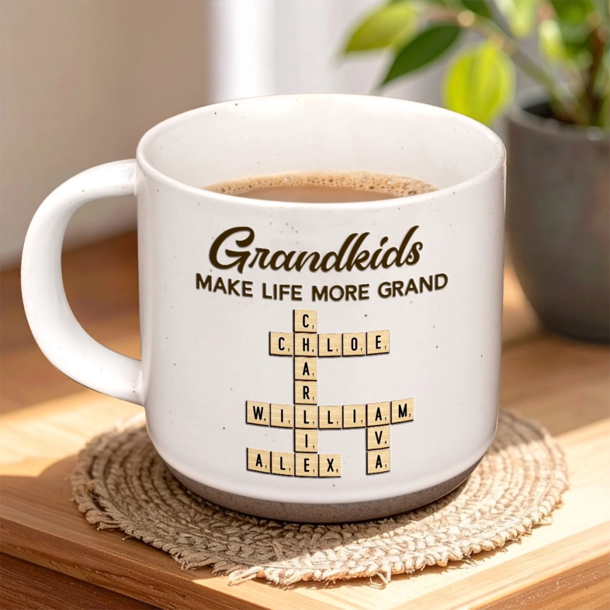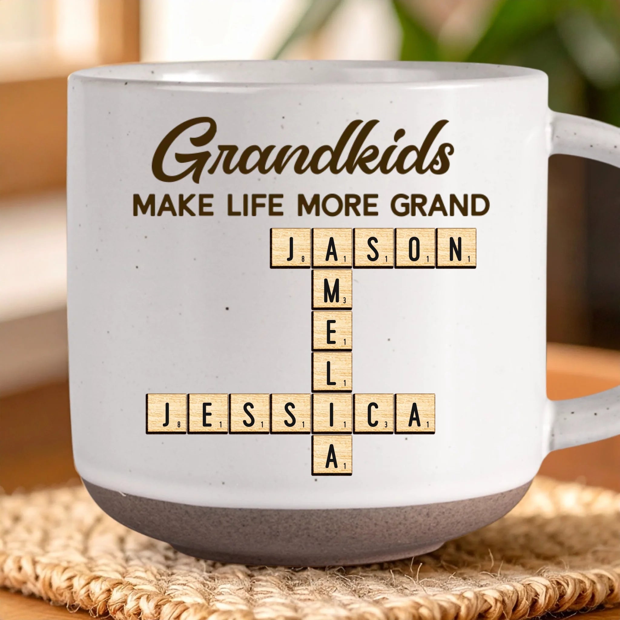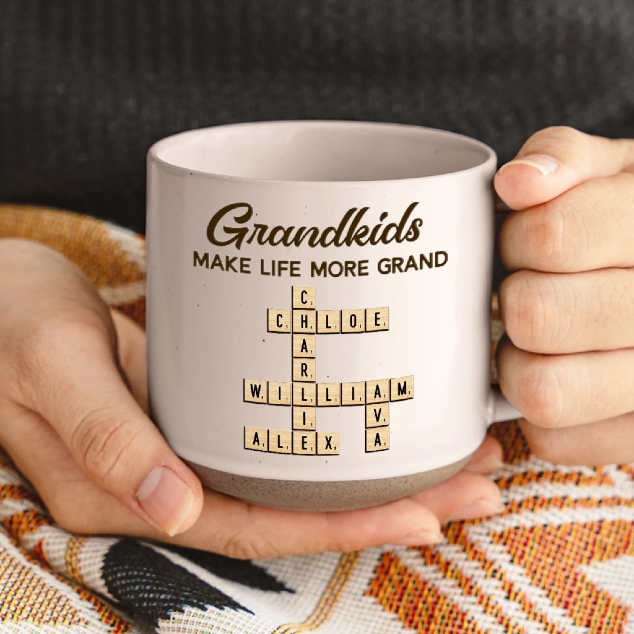 Custom Scrabble Printed Pottery Mug - Personalized Birthday Gifts For Mom, Grandma - Heart Full Because Of You
