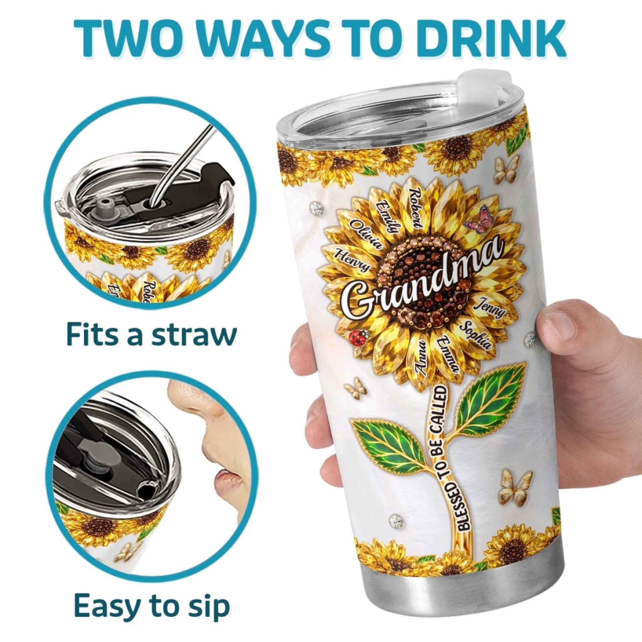 Custom Sunflower Tumbler - Personalized Mother's Day Birthday Gifts For Mom, Grandma - Grandma Life, Best Life