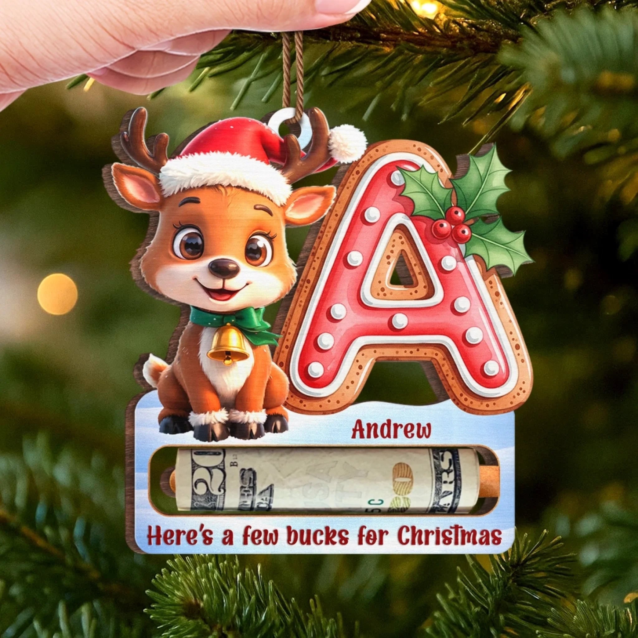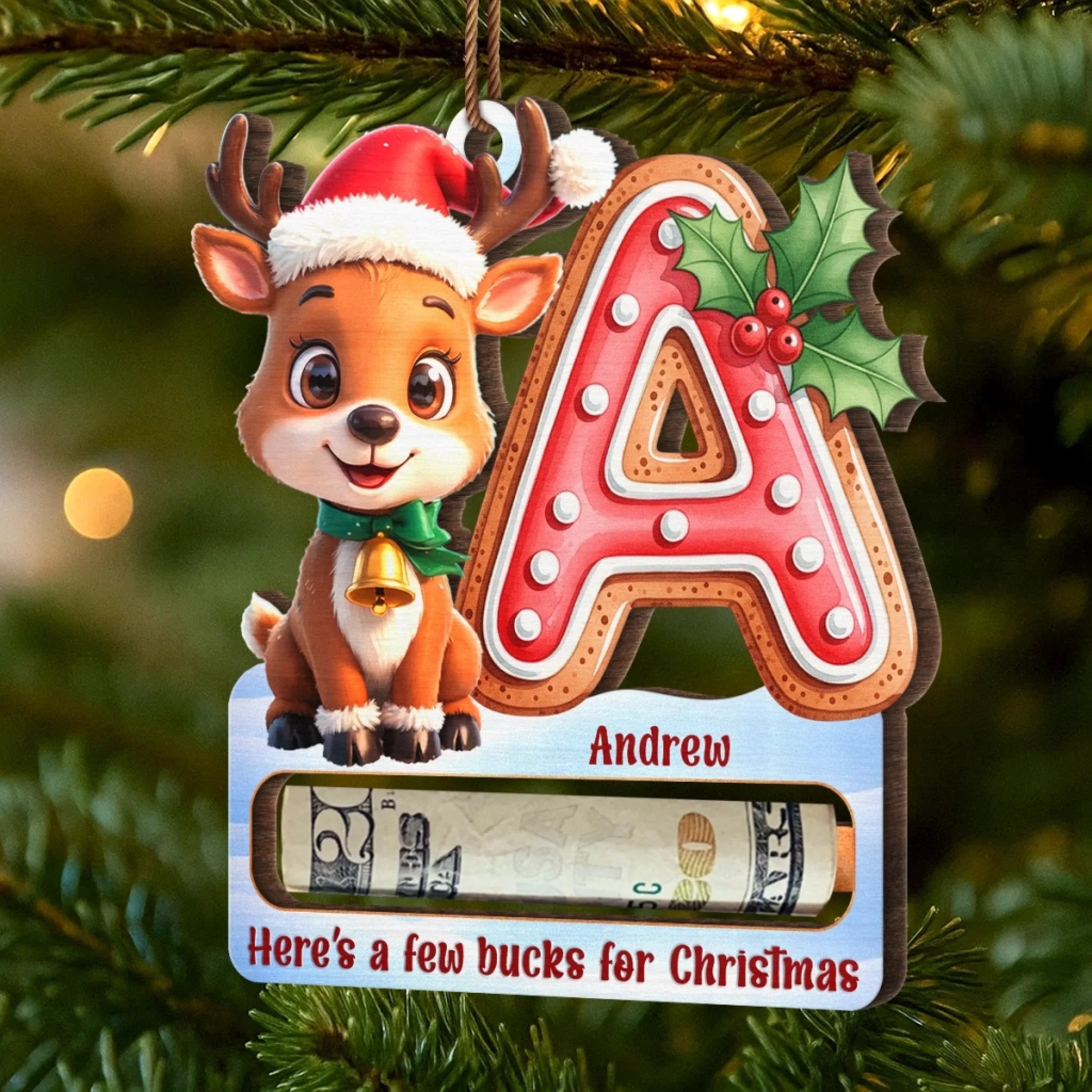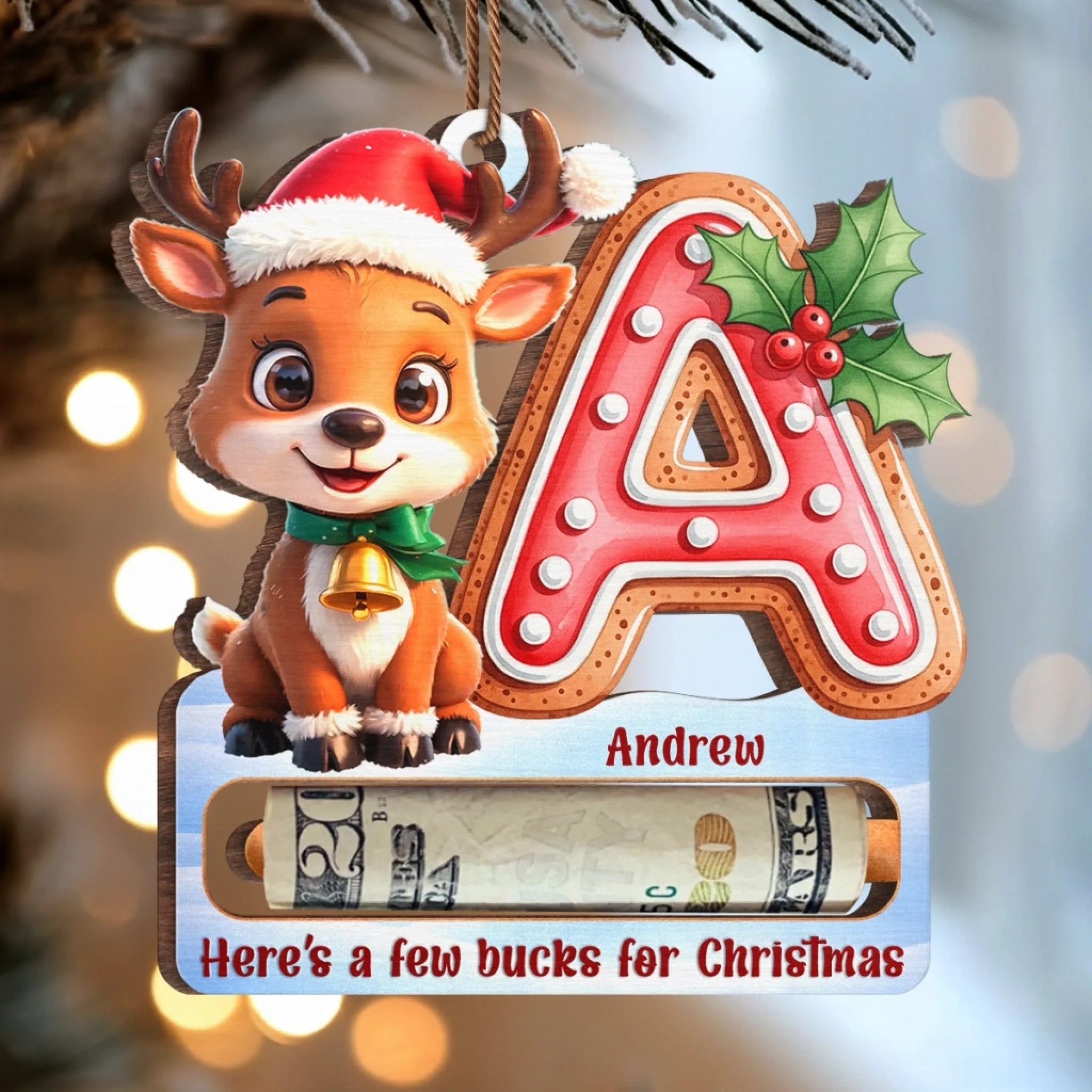 Custom Wooden Money Holder Ornament - Personalized Christmas Birthday Gifts For Kids - Magical Christmas Moments For Little Ones
