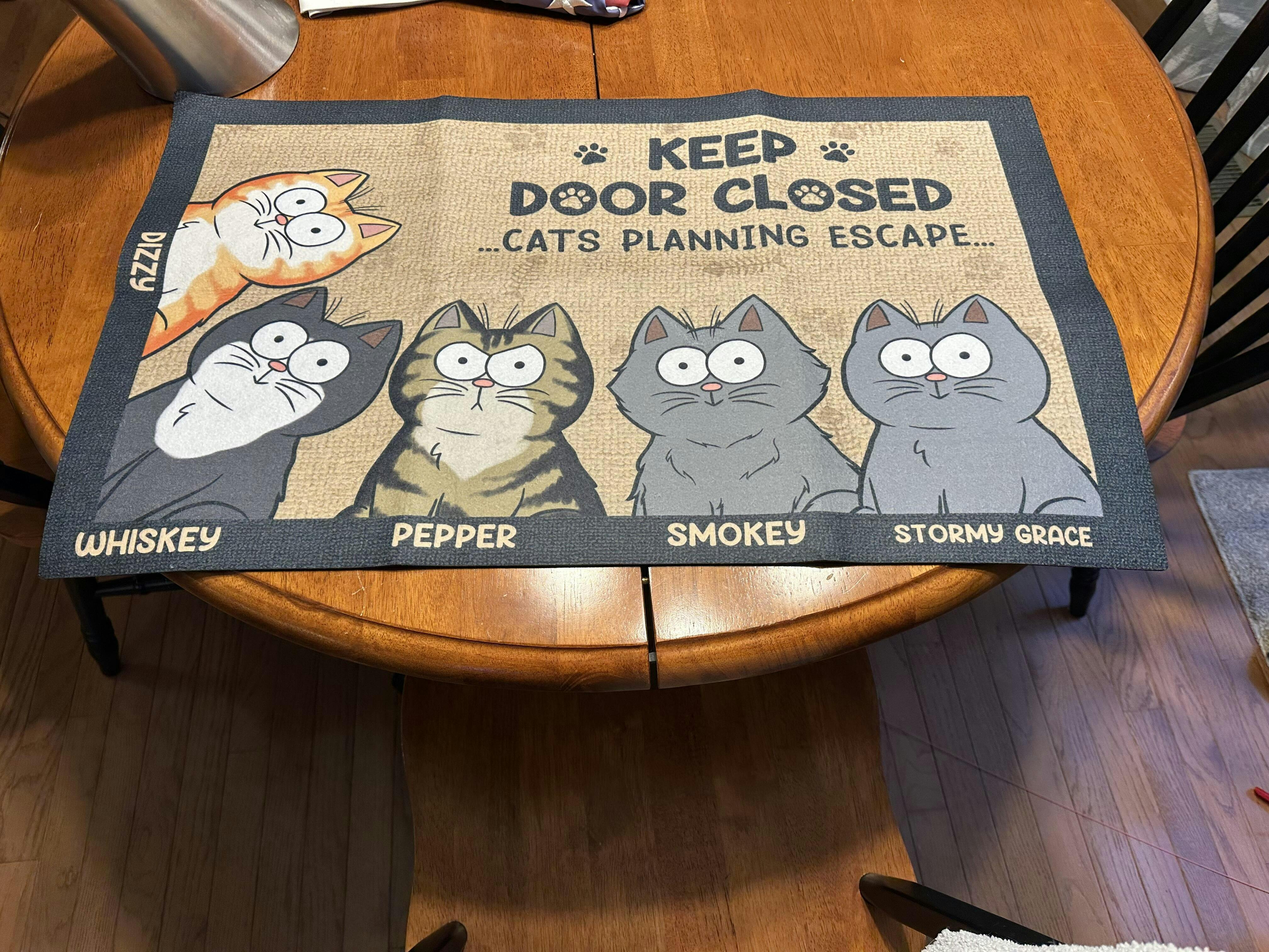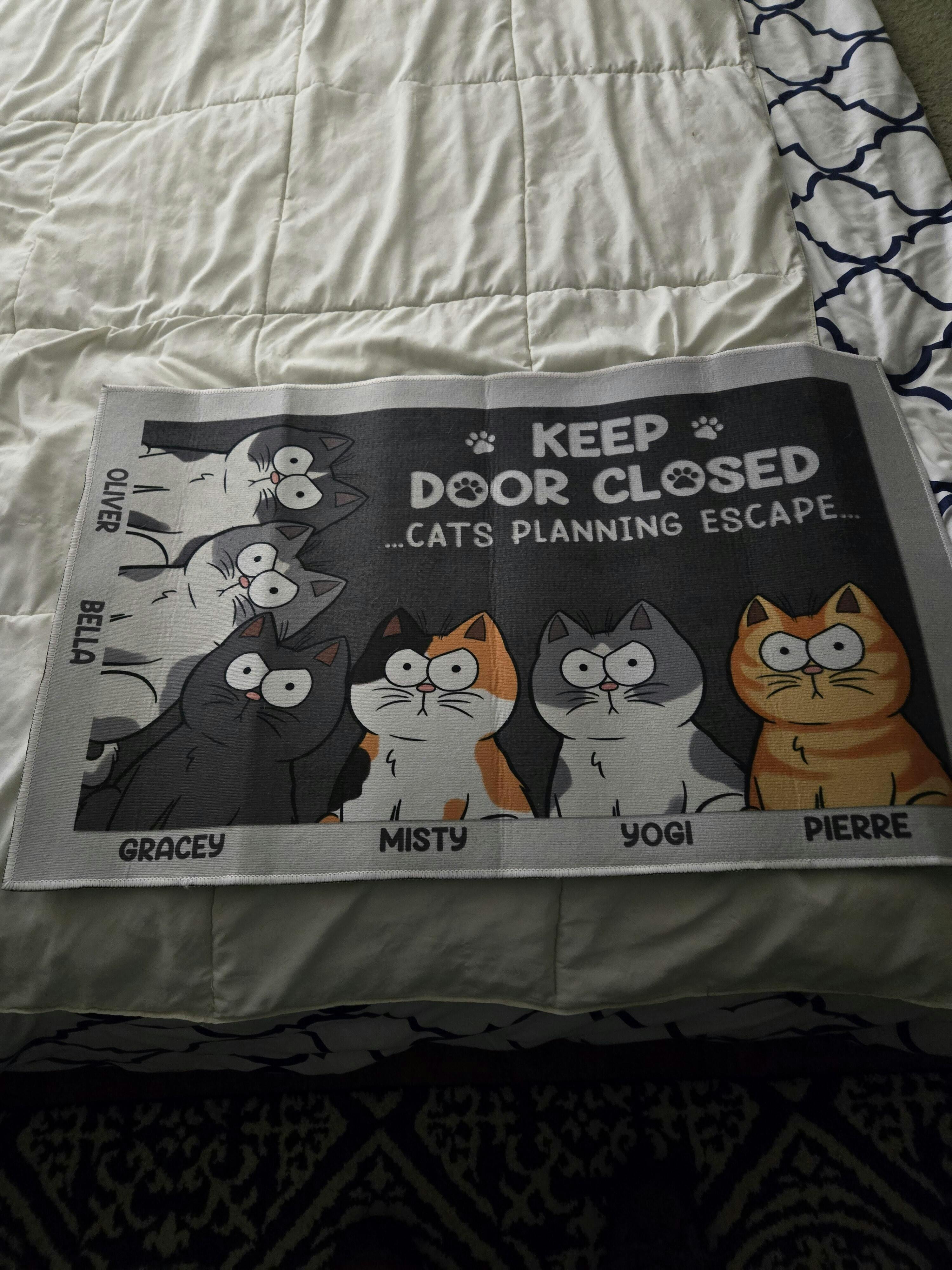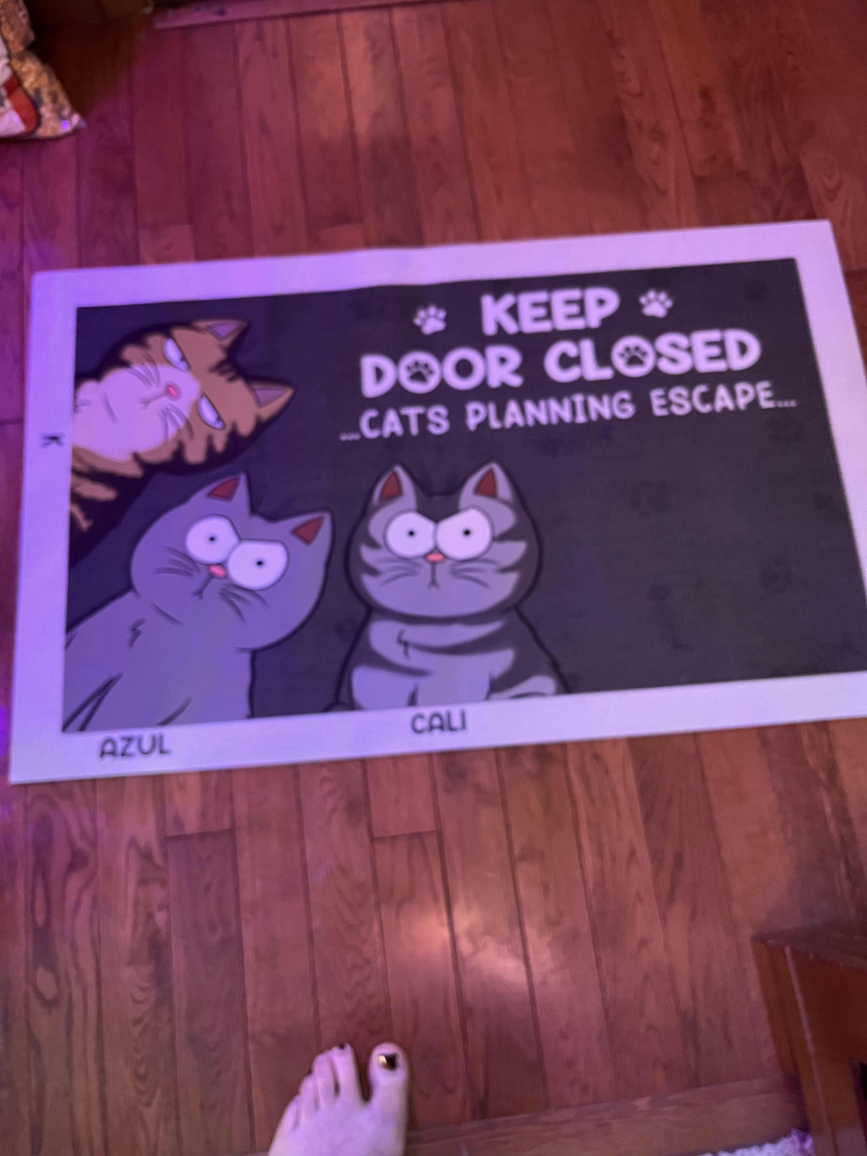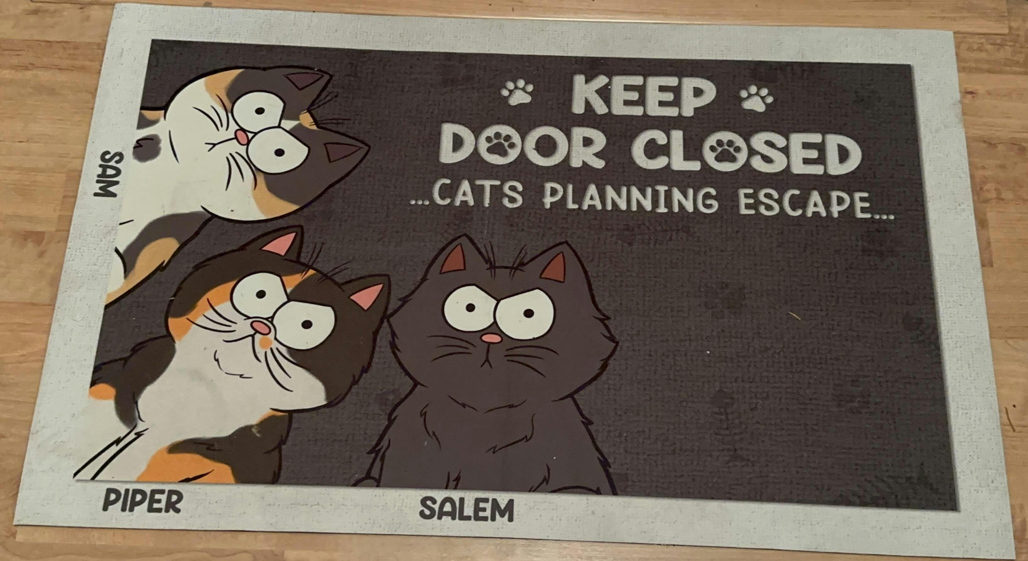Message: "Keep door closed - Cats/Dogs/Pets planning escape...".
