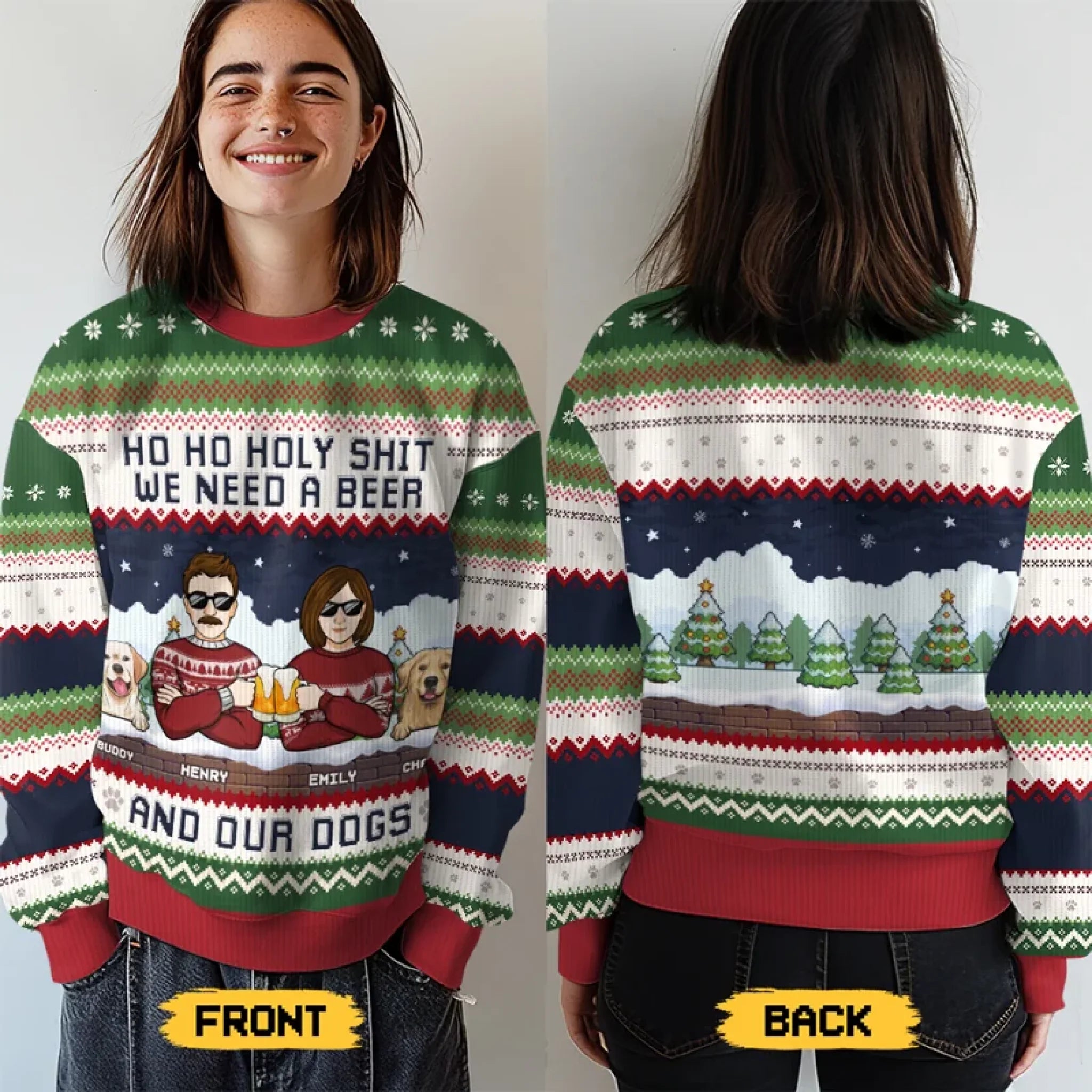 This lovely all-over-print sweatshirt is a perfect choice whether you are seeking for a special gift for your loved ones or just want to dress up your Holiday season with a trendy outfit.
