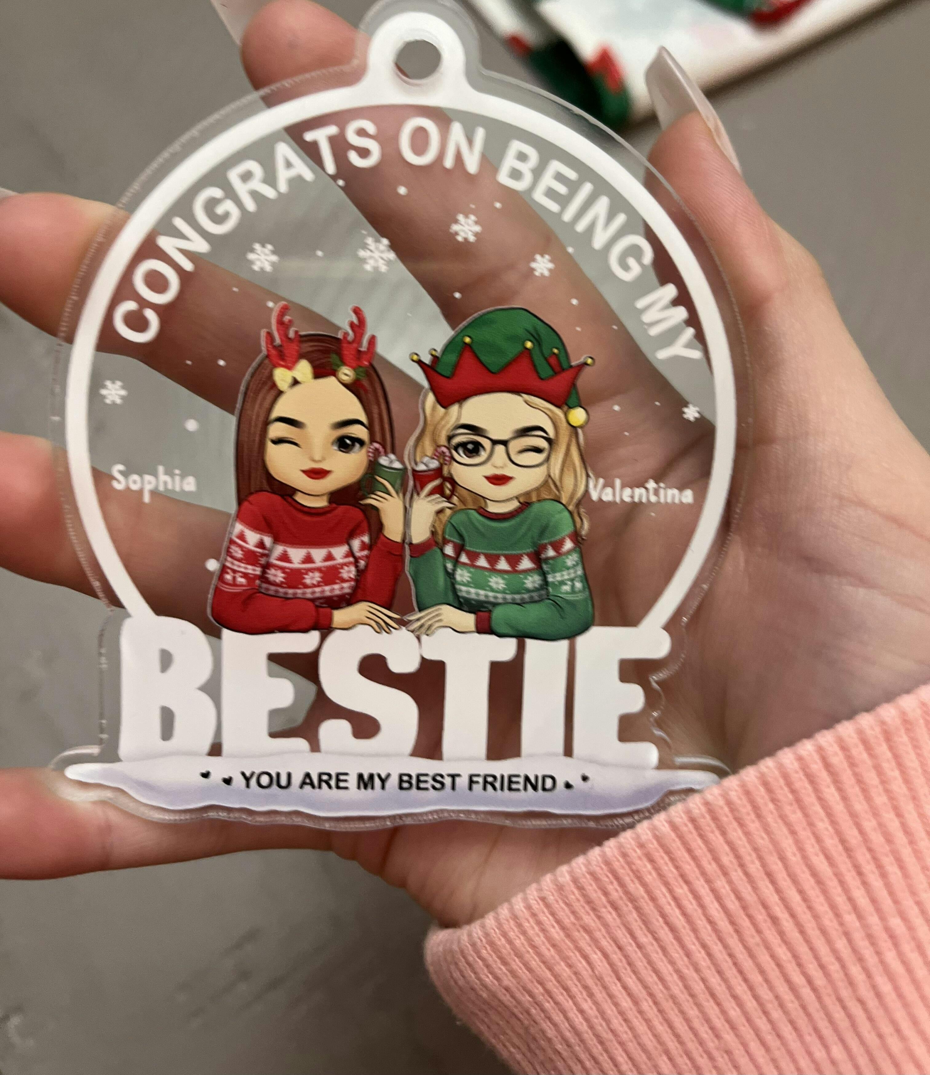 We're Besties Forever - Bestie Personalized Custom Ornament - Acrylic Snow Globe Shaped - New Arrival, Christmas Gift For Best Friends, BFF, Sisters