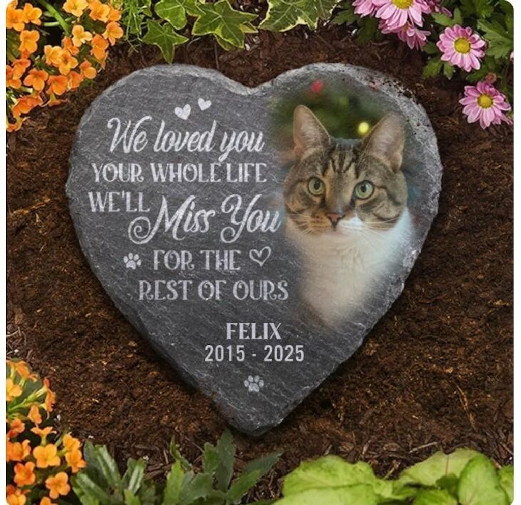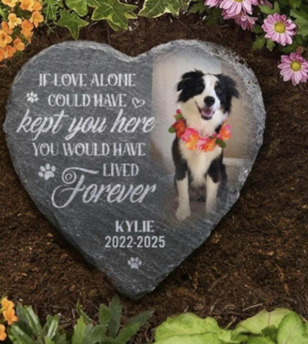 Memorial garden stone is the perfect keepsake to honor the memory of a beloved pet. Remember the love and happiness you shared with your furry friend when you look at this stone, a beautiful addition to any garden or walkway.